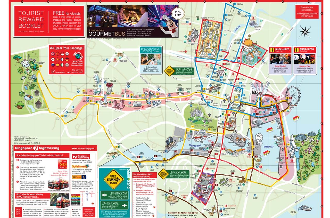 Les Bus Touristiques: Les cinq itinéraires proposés par City Sightseeing pour faire le tour de Singapour, avec des arrêts facultatifs, vous permettront de faire ce tour dans de bonnes conditions, par terre ou par mer, de jour comme de nuit. Du haut des bus rouges à l’impériale, ne vous perdrez pas les vues panoramiques à 360º et explorerez tout ce que Singapour a à offrir. 33 haltes permettent de voir une multitude d’attractions qui incluent l’Asian Civilisation Museum, le Chinatown Heritage Centre, le Singapore Art Museum et le City Hall. Explorez Boat Quay, Bugis Village, the historic civil District et Little India. Reposez-vous à Marina Bay, sur l’Esplanade ou près de la rivière de Singapour. Explorez Singapour avec votre ticket d’une validité de 24 heures qui vous offre cinq tours en un. Plus qu’un simple tour, City Sightseeing vous offre un système de transport interconnecté pendant tout votre séjour. Vous pouvez descendre et remonter à chacune des haltes disposées commodément dans toute la ville pour vous aider à maximiser votre visite. Tarif 28€ par adultes. tèl +65 63386877. Site internet ici